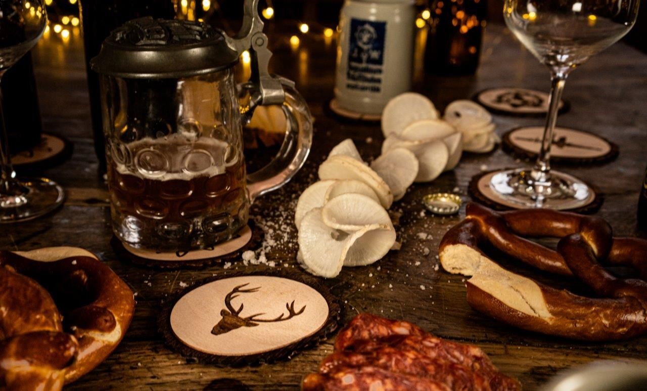 Ausergewöhnliche Holzuntersetzer für echte Hirschliebhaber. Die Untersetzer sind mit einem speziellen Hartöl eingelassen, einfach zum abwischen wenn mal ein Tropfen daneben geht.
